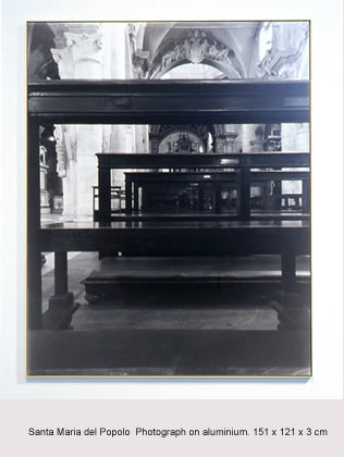 Santa Maria is a site-specific installation commissioned for Aspex Gallery in which Crisp took as her starting point the building's former life as a church and it's subsequent conversion to a white cube gallery space. The large-scale photographs were made during a six-month residency at The British School at Rome during the winter of 2001/2002. Over this period Crisp visited a great many churches, returning repeatedly to those she chose to work with.