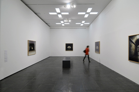 Within the installation there is a strong emphasis placed on the dialogue between the work and the architecture of the gallery. The construction of the spaces allow for the possibility of experiencing the formal presence of the works, including their sculptural dynamics of mass and weight, alongside the intellectual ‘reading’ of the work as images. Some works are isolated with particular sight lines, allowing the scale of the image, in relation to us as viewers as well as to the architecture, to become explicit.